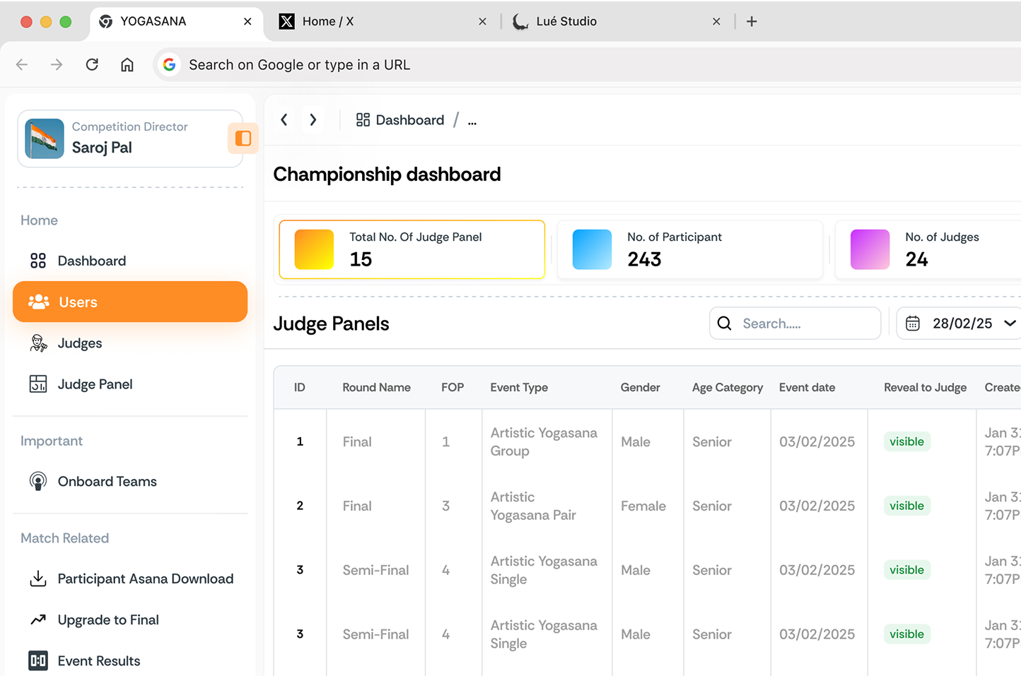YUGA transforms Yogasana competitions into a seamless digital experience — enabling organizers to scale effortlessly, judges to score accurately, and athletes to perform with confidence.